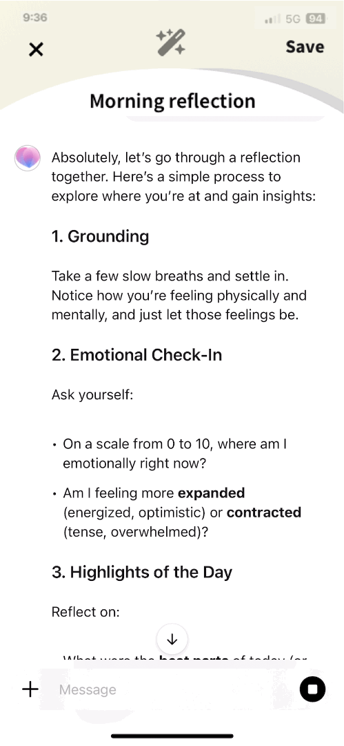 Your people get short, role-specific check-ins between sessions. Not generic prompts: questions shaped by the actual pressures of their work. A paramedic and a corporate lawyer experience Ascenda differently.